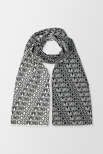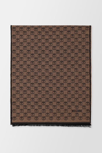 MOSCHINO BROWN LOGO INTARSIA-KNIT FRINGED SCARF
