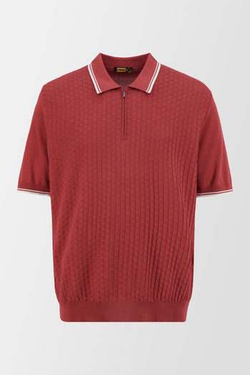ZILLI BURGUNDY ZIPPED DIAMOND CUT POLO