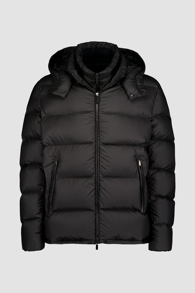 ZILLI BLACK DOWN SHORT JACKET WITH REMOVABLE HOOD