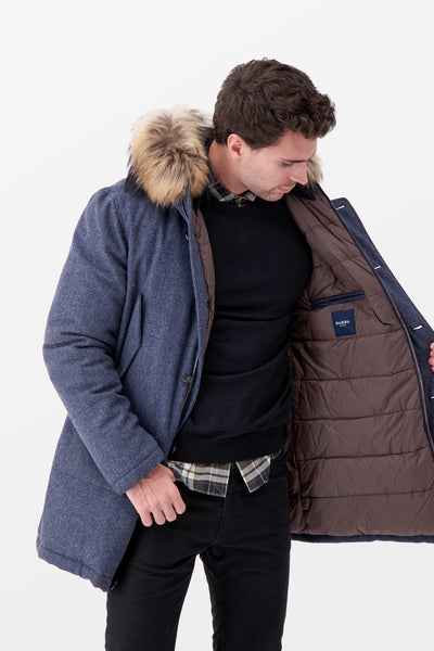 To find the best material for this type of clothing, you need to consider the style of the garment. So, it is crucial to consider the outer layers and filler for a down jacket. In this case, the best winter jacket material is a combination of polyester fibers outside and down or feather inside. To give the image an elegant business look, some people prefer to set aside down jackets in favor of structured styles. For such outerwear, wool is the best choice, bringing warmth and comfort in cold temperatures.