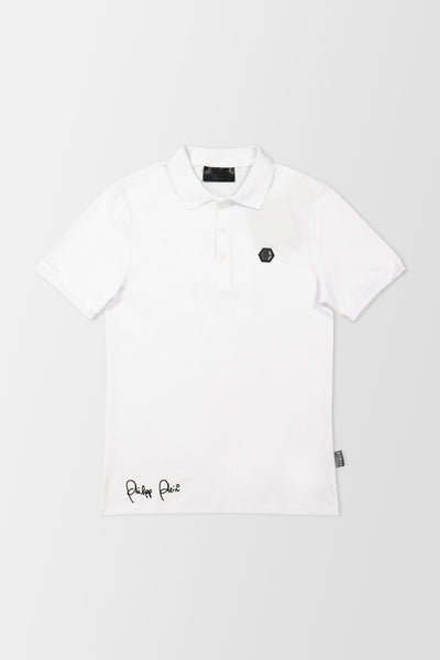 PHILIPP PLEIN WHITE STARS AND SKULL POLO