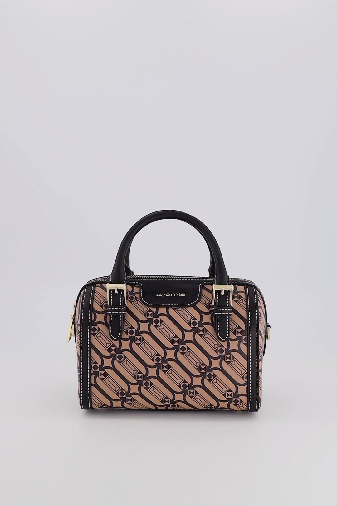 The trunk bag features an iconic monogram pattern, accentuated by contrasting topstitching. Crafted from smooth calfskin and adorned with light gold detailing, it can be carried by hand or slung over the shoulder,.